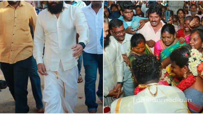 இந்நிலையில் நடிகர் விக்ரமின் வீட்டில் பல ஆண்டுகளாக பணியாற்றியவரின் மனைவியான “மேரி” என்பவர், இவருடைய வீட்டில் கடந்த நாற்பது ஆண்டுகளுக்கும் மேலாக பணியாற்றி வருகிறார். இவர்களது வாரிசான தீபக் என்பவருக்கும், மணமகள் வர்ஷினி என்பவருக்கும், திருப்போரூர் கந்தசாமி கோவிலில் திருமணம் நடைபெற்றது. இந்த திருமணத்தில் நடிகர் விக்ரம் கலந்து கொண்டு, மணமக்களை வாழ்த்தினார்.