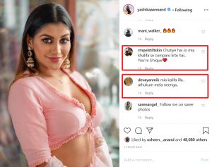 அந்த வகையில், தற்போது தன்னுடைய புகைப்படம் ஒன்றை வெளியிட்டுள்ளார் இவர். அதனை பார்த்த ரசிகர்கள், எல்லோரும் உங்களை மியா கலிஃபா என்று கூறுகிறார்கள். ஆனால், நீங்கள் தனித்துவமானவர் என்றும், மியாகலிஃபாவுக்கும் மேலே நீங்கள் என்றும் கமெண்ட் செய்து வருகிறார்கள். அந்த புகைப்படம் இதோ,,,