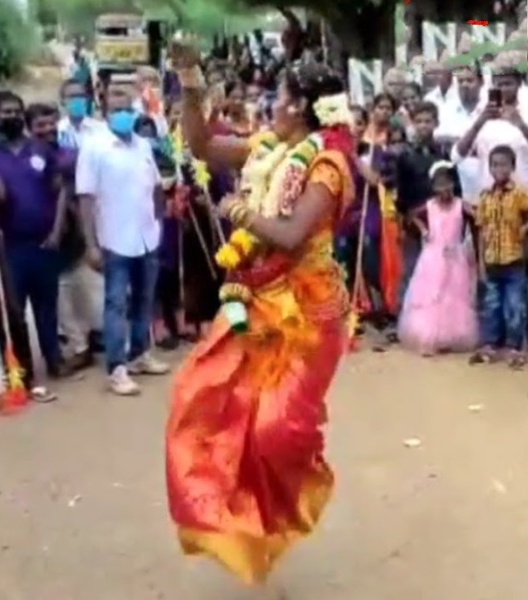 தூத்துக்குடியின் தேமான்குளத்தைச் சேர்ந்த ராஜ்குமார் – நிஷா தம்பதிக்குத் திருமணம் சிறப்பாக நடந்த நிலையில் மணமக்கள் ஊர்வலமாக அழைத்து வரப்பட்டனர்.