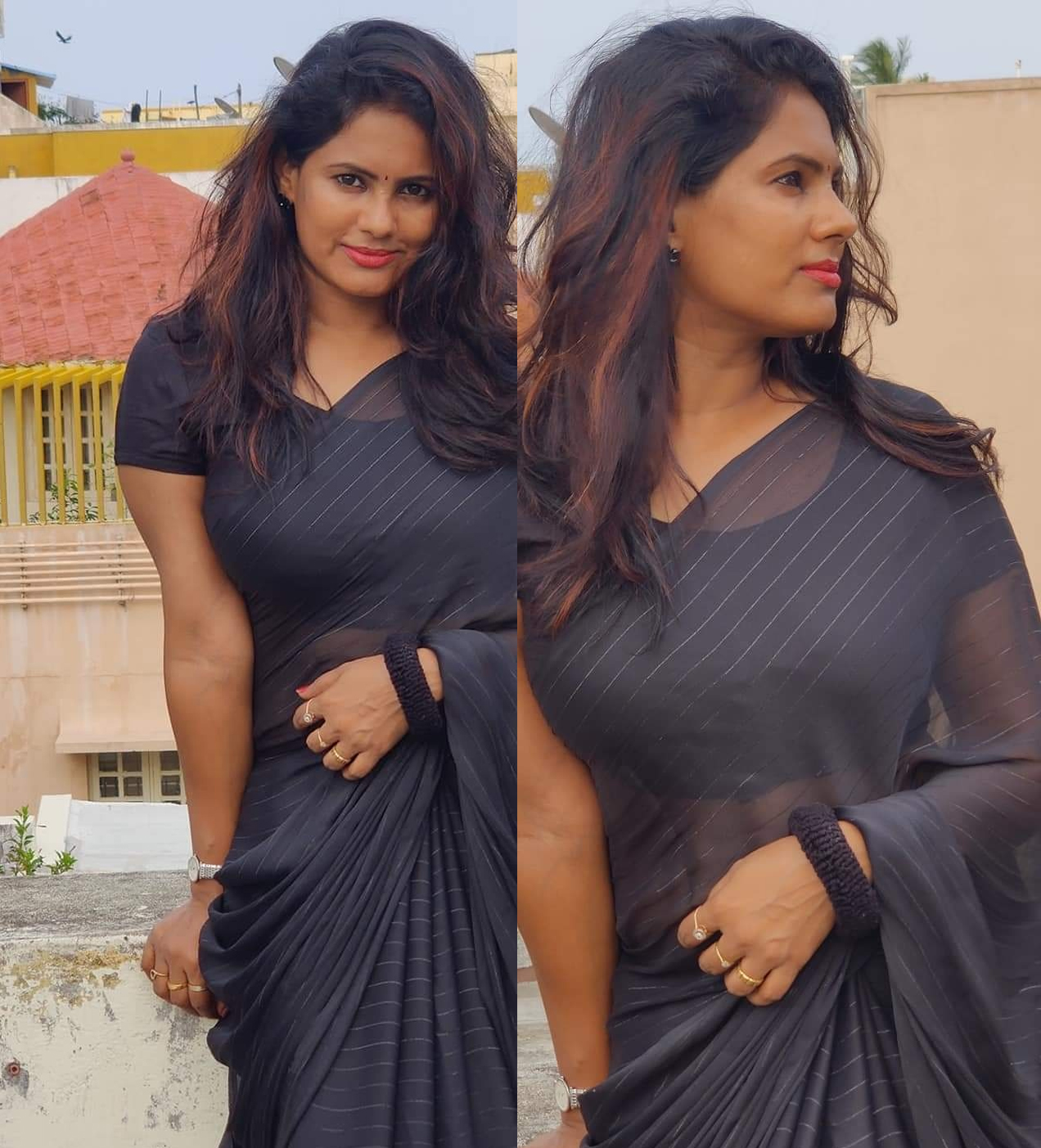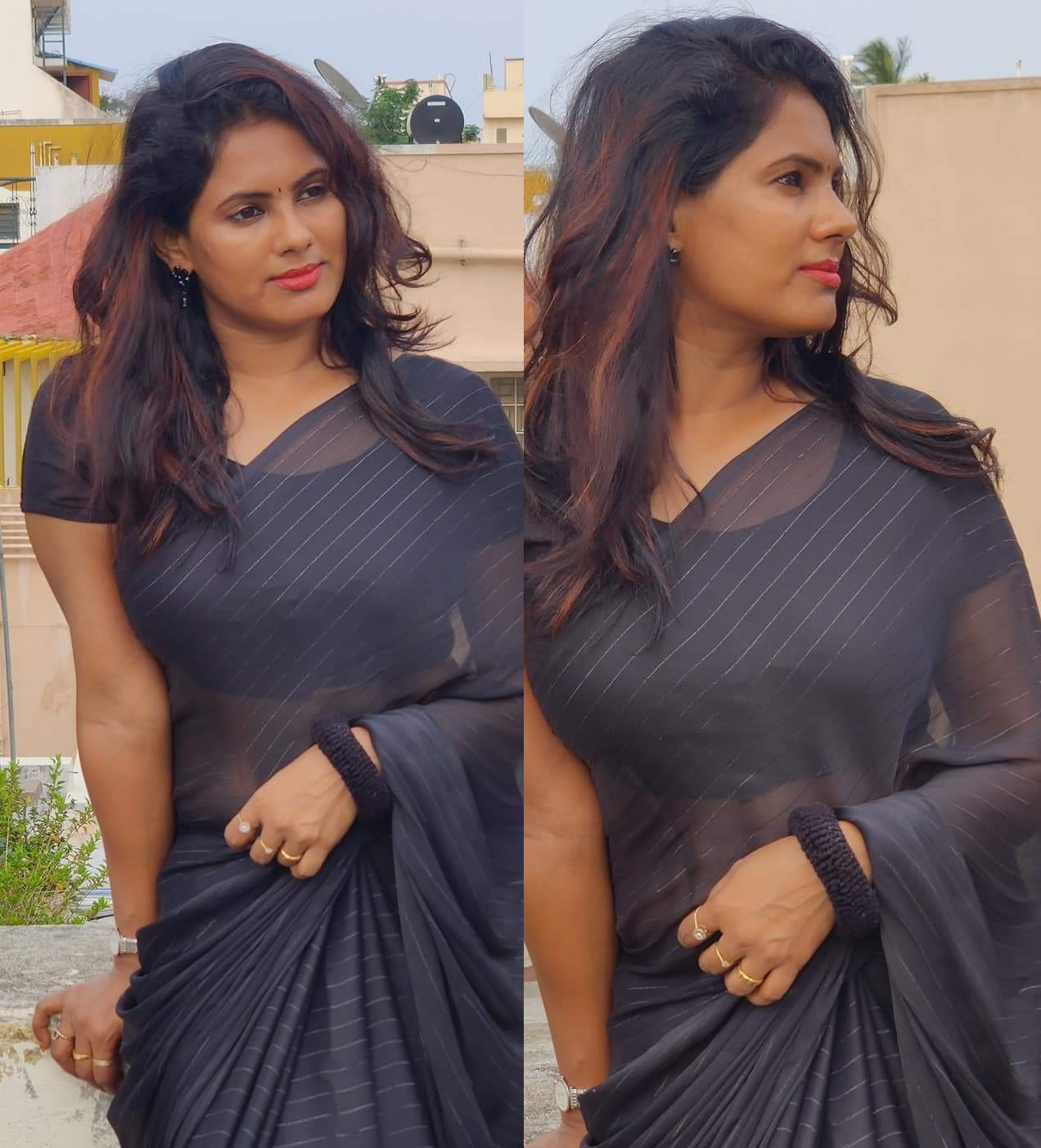 மேலும், இவருக்கு சமூகவலைத்தளங்களில் ரசிகர்கள் உள்ளார்கள் என்று சொல்லலாம், இந்நிலையில், மொட்டை மாடியில் கருப்பு நிற ட்ரான்ஸ்ப்ரண்ட் புடவையில் போஸ் கொடுத்துள்ள அவரது சில புகைப்படங்கள் இணையத்தில் வெளியாகி வைரலாகி வருகின்றது, என்று தான் சொல்ல வேண்டும். இதோ அந்த புகைப்படங்கள்….