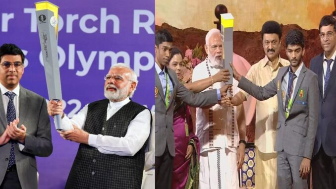 இந்நிலையில் தமிழக முதல்வர் ஸ்டாலின் அவர்களிடம் செஸ் ஒலிம்பியாட் ஜோதியை விஸ்வநாதன் ஆனந்த் அவர்கள் வழங்கினார். அதனைத் தொடர்ந்து முதல் பஸ்ட் ஸ்டாலின் பிரதமர் நரேந்திர மோடி இடம் ஒலிம்பியாட் ஜாதியை வழங்கினார். பின்னர் இளம் க்ராண்ட் மாஸ்டர் பிரக்ஞானந்தா உட்பட 3 பேர் செஸ் ஒலிம்பியா ஜோதியை ஏற்றி வந்தனர். கடந்த செஸ் ஒலிம்பியாட் போட்டியில் பிரதமர் ஓடி கையில் ஜோதியை வாங்கியதும் இந்த 44வது ஒலிம்பியாட் போட்டியில் முதல்வர் கையில் ஒலிம்பியாட் ஜோதியை வாங்கிய  வீடியோ தற்போது இணையத்தில் வைரல் ஆகி வருகிறது.