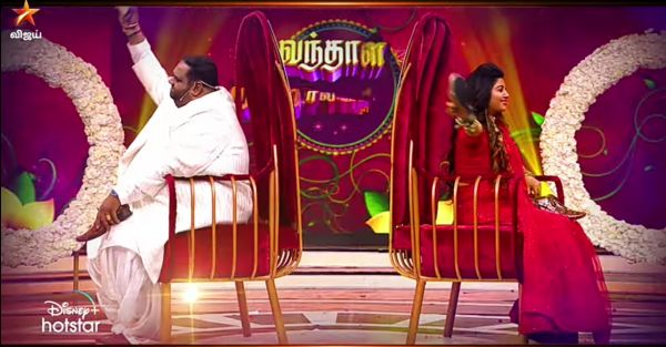அதே சமயம் இருவரும் ஒரே பதிலை கூறினால் அவர்களுக்கு மார்க் வழங்கப்படும். அதற்காக இருவரது கையில் ஆண் மற்றும் பெண் செருப்பு கொடுக்கப்பட்டிருக்கிறது. அந்த கேள்விக்கு பதில் மகாலட்சுமி என்றால் பெண் செருப்பை காட்ட வேண்டும். அதுவே ரவீந்தர் என்றால் ஆண் செருப்பை காட்ட வேண்டும். இவ்வாறு அவர்களின் கையில் செருப்பை கொடுத்து விஜய் டிவி கேவலப்படுத்தியுள்ளது.அந்த புகைப்படங்கள் தற்போது இணையத்தில் வைரல் ஆக்கி வருகிறது.