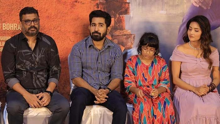 இந்த நிகழ்ச்சியில் பேசிய விஜய் ஆண்டனி, படத்தின் இயக்குநர், தயாரிப்பாளர், இசையமைப்பாளர் ஆகியோருக்கு நன்றி சொன்னார். சிறந்த படமாக இருக்கும் என்றும் தெரிவித்தார். அவரை தொடர்ந்து பேசிய படத்தின் இயக்குநர் அமுதன், சந்தோஷமாக நடக்க இந்த நிகழ்ச்சி, அப்படி நடக்கவில்லை. என் அப்பா இறந்த போது, விஜய் ஆண்டனி வந்திருந்தார். எனக்கு ஆறுதல் கூறினார். அந்த வார்த்தைகளையே இப்போது நானும் கூறுகிறேன், உங்க கூட நாங்க இருக்கோம் சார், என்பதுதான் என்றார்.